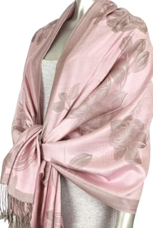 Lightweight Two Tone Rose Floral Design Pashmina Fringe Scarf / Stole / Wrap ( Choose from 20 Colors )