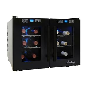 Vinotemp VT-12TEDTS-2Z 12-Bottle Dual-Zone Thermoelectric Wine Cooler, Black
