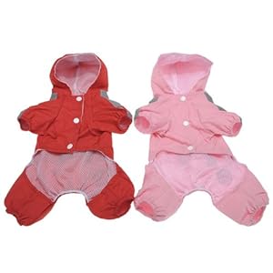 LuckyStore Dog Cat Waterproof Hoodie Jumpsuit TAFFETA Rain Coat Glossy Clothes Red S